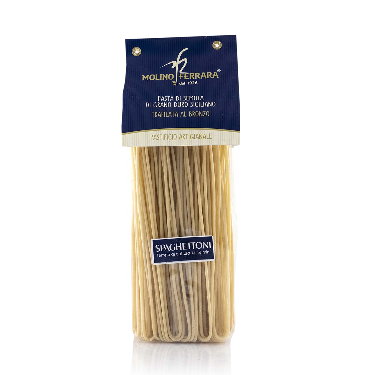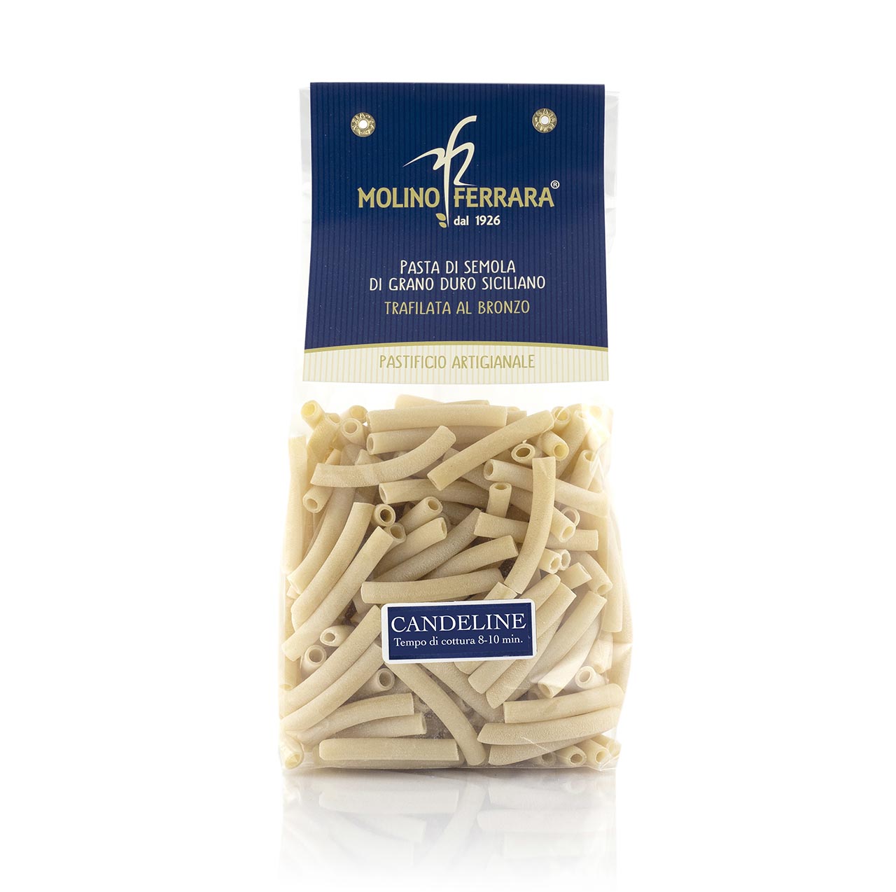 Si tratta della linea di pasta di alta qualità prodotta con semole siciliane selezionate dal Molino Ferrara per le caratteristiche tecnologiche superiori.